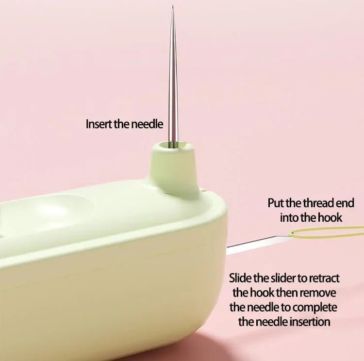 Med en senaste uppgraderad trädningsmekanism gör detta verktyg trädningen enklare än någonsin. Sätt bara in nålen, kroka tråden och dra tillbaka – trädningen är klar med lätthet. Perfekt för dem som vill spara tid och undvika frustration.