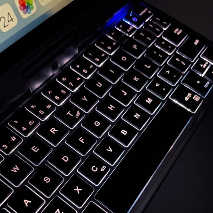 * 7-FÄRGADE BAKGRUNDSBELYSTA TANGENTER - Rymligt tangentbord med laseretsade tangenter med 7-färgs LED-bakgrundsbelysning, 3 ljusstyrkenivåer att justera, utformad för att maximera skrivupplevelsen, lysa upp tangenterna i ett mörkt rum för bekvämt upplyst skrivande. Med PadOS-genvägarna kan du justera bakgrundsbelysningens färger, ljusstyrka, volymkontroll, mediekontroll och mycket mer.