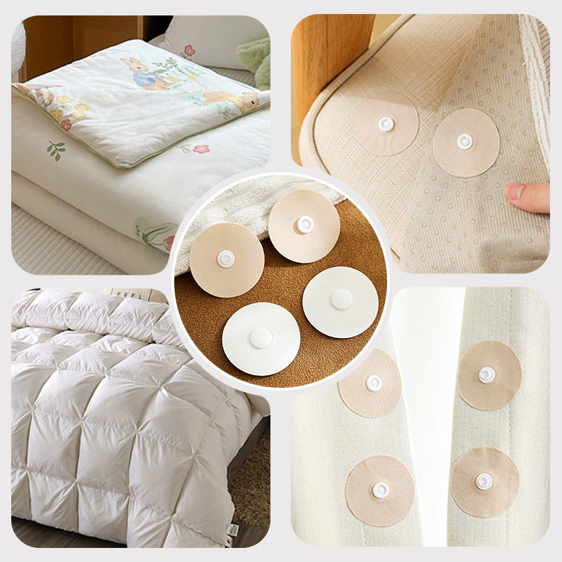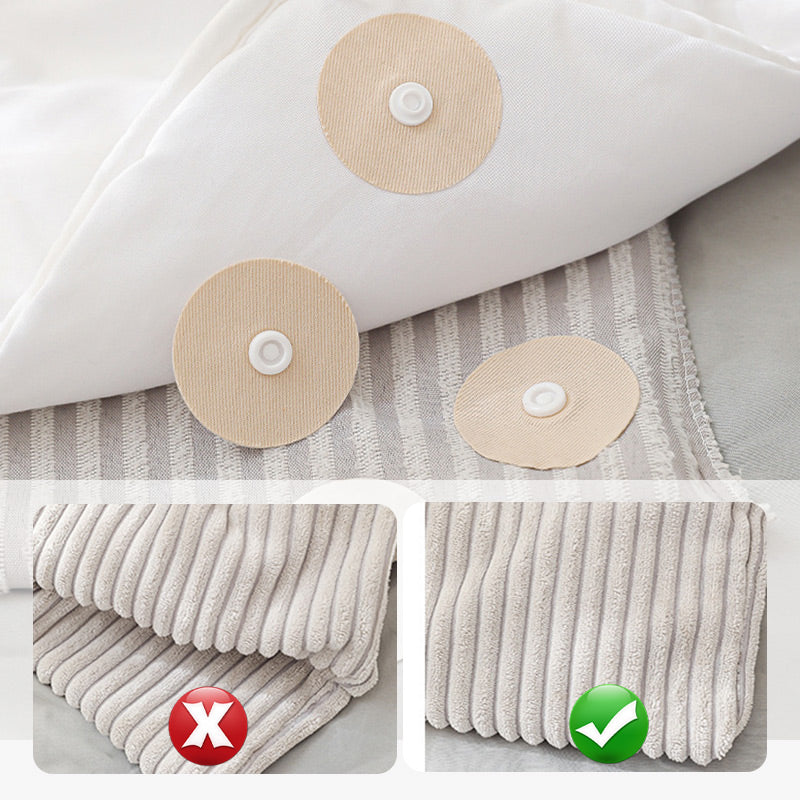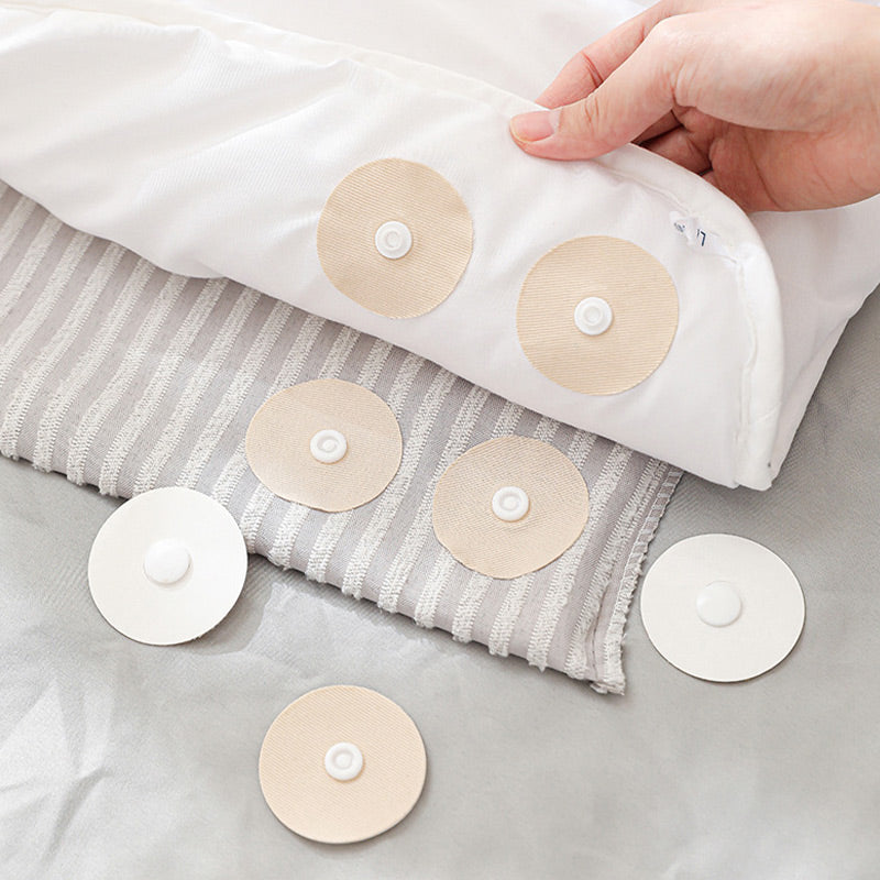 Återanvändbara halkfria knappar för att hålla täcket på plats