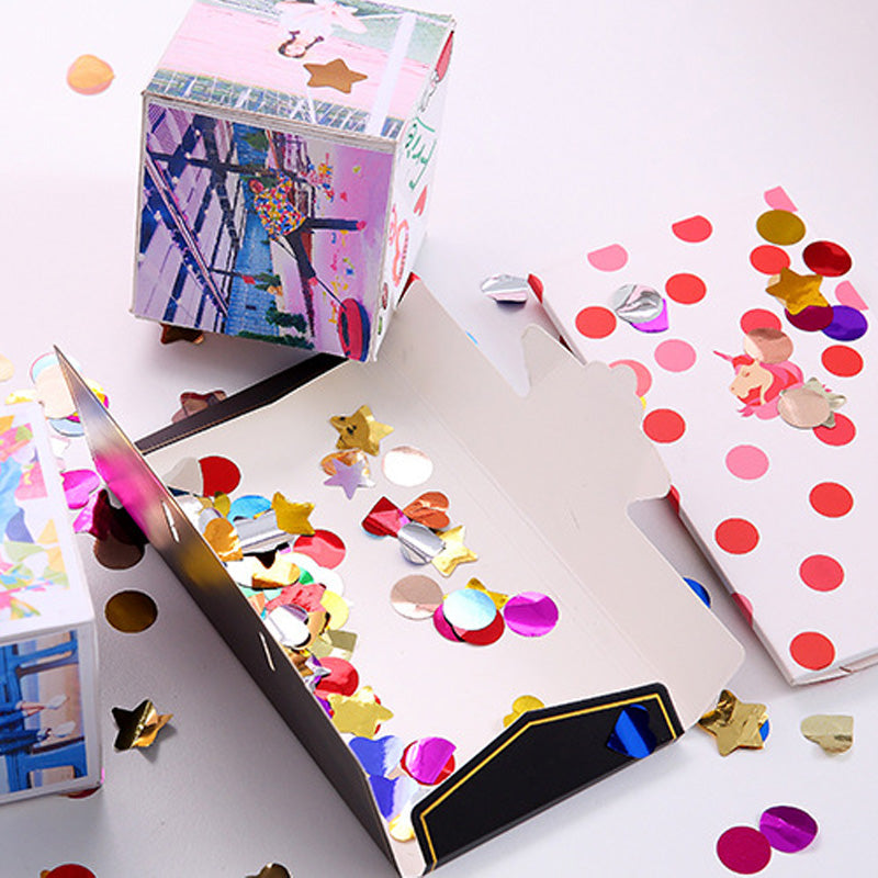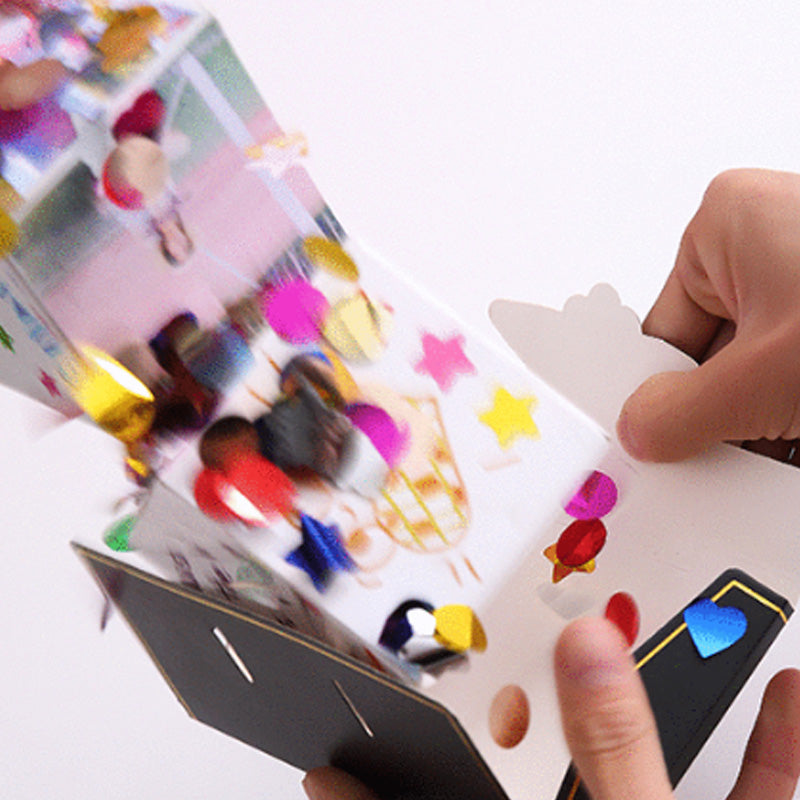 Det som utmĂ€rker vĂ„ra pop-up överraskningskort Ă€r det magiska ögonblicket nĂ€r de öppnas. NĂ€r kortet vecklas ut kommer fĂ€rgglada pappersbitar till liv och skapar en förtrollande upplevelse. Det Ă€r som en explosion av glĂ€dje och fest direkt i dina hĂ€nder, vilket gör det till en oförglömlig överraskning.Â