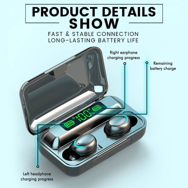 Det LED-digitala displayen visar tydligt återstående ström och laddningsstatus för Bluetooth-hörlursfodralet, vilket håller dig uppdaterad om vänster och höger hörlurs strömnivå i realtid, så att du alltid har kontroll över enhetens status.