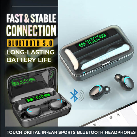 Pekskärm Digital-Öron Bluetooth-hörlurar för sport använder den senaste Bluetooth 5.0-tekniken, vilket ger snabb ihopkoppling med en stabil anslutning och bredare signalöverföring.
