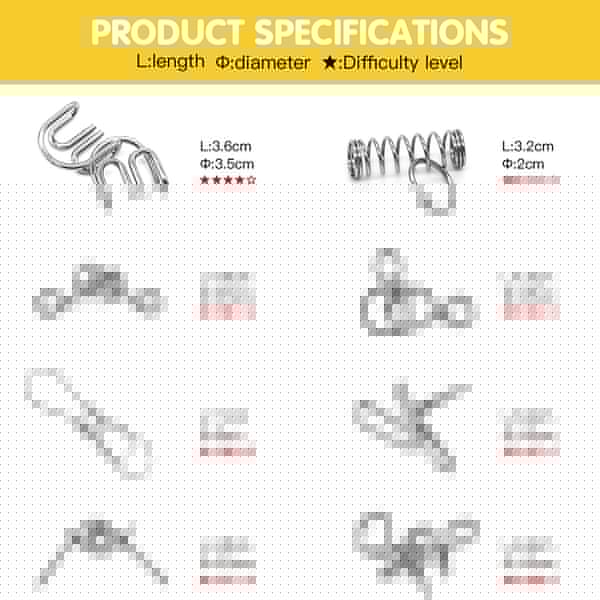 🎁[Fördelar med pusselspel] Att spela detta metalltrådspussel kan förbättra förmågan att observera, förstå, analysera och resonera. Det är en traditionell kinesisk hjärngympa, som kan träna upp divergent tänkande och locka barns uppmärksamhet.
