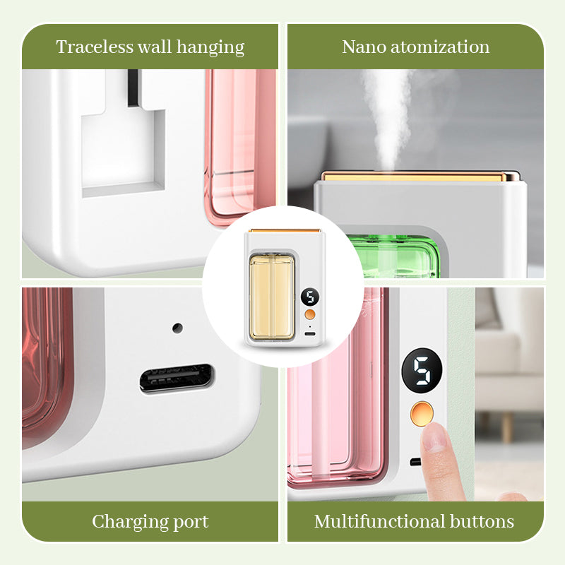 Ingen skada på väggen, kompakt design och långvarig doft för en förbättrad aromaterapiupplevelse. Laddning på 2 timmar, räcker i 60 dagar!