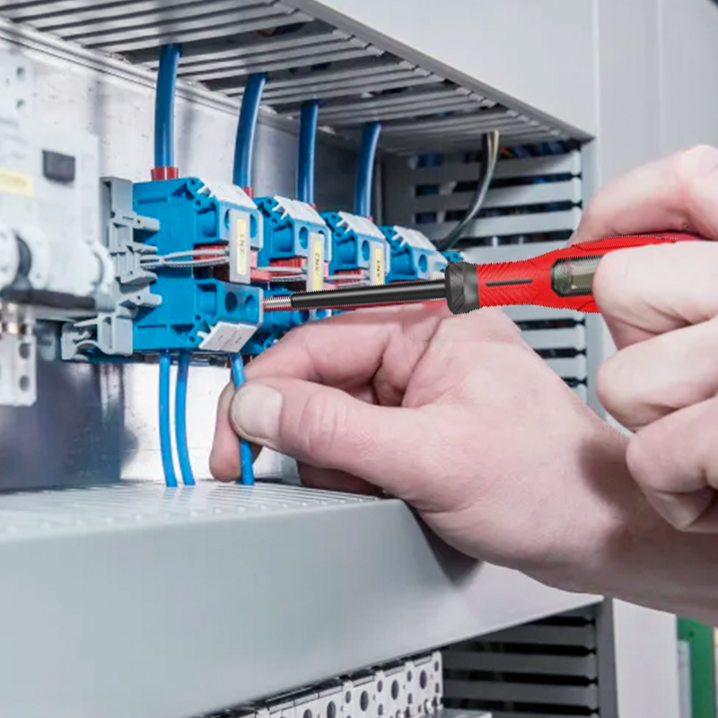SMART LEDARSDETEKTERING: Utrustad med intelligent krets för att säkert identifiera fas- och nolledare. När du vidrör kopparkappen och detekterar uttaget indikerar både rött och grönt ljus en fasledare, och endast grönt ljus signalerar en nolledare.