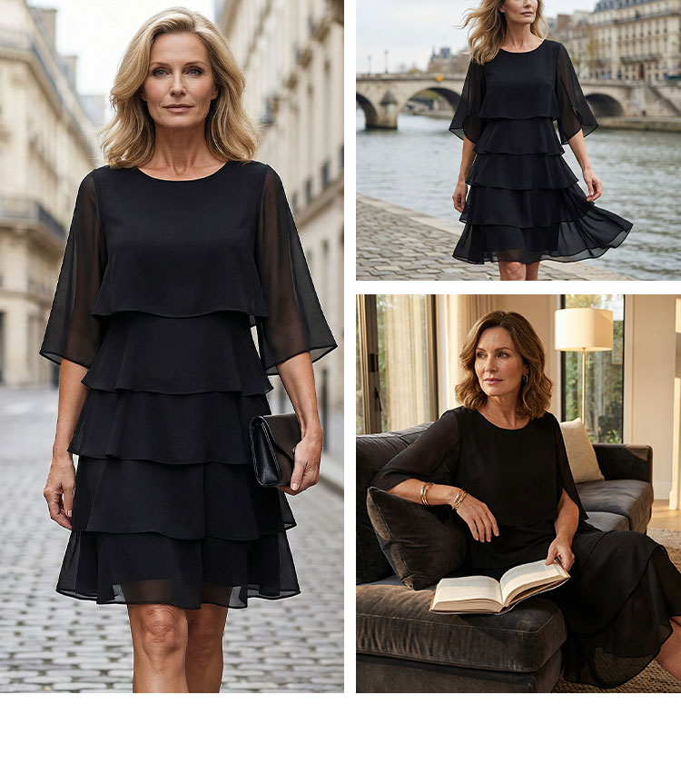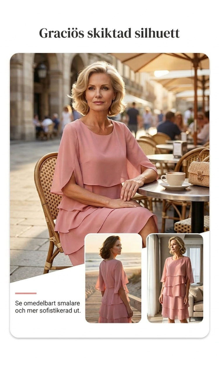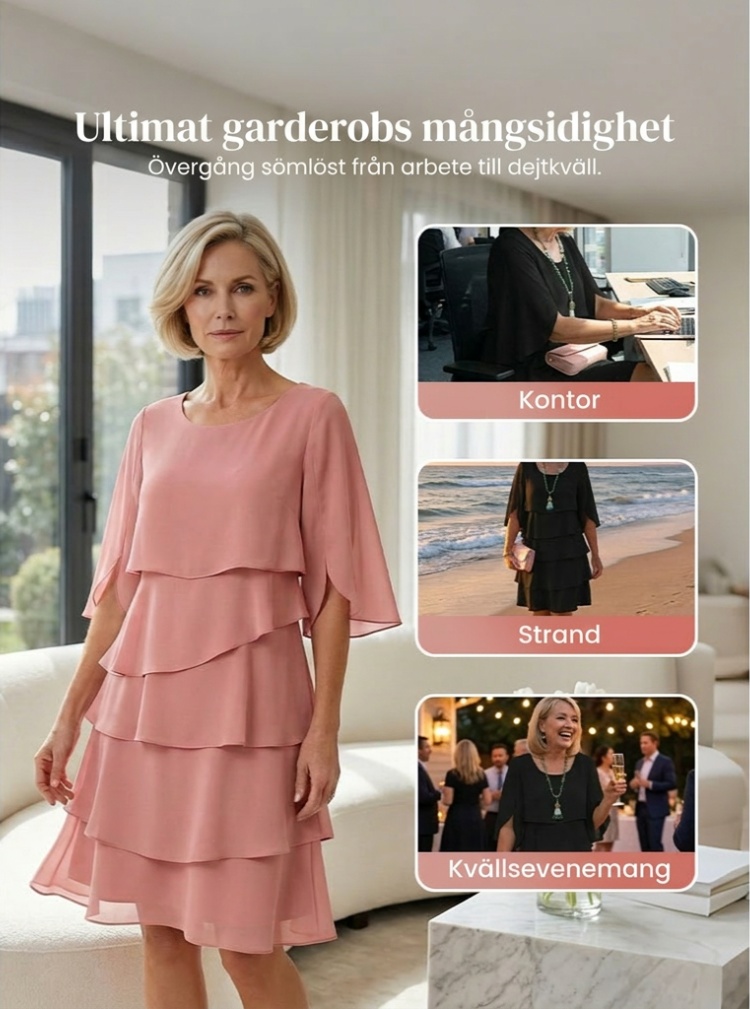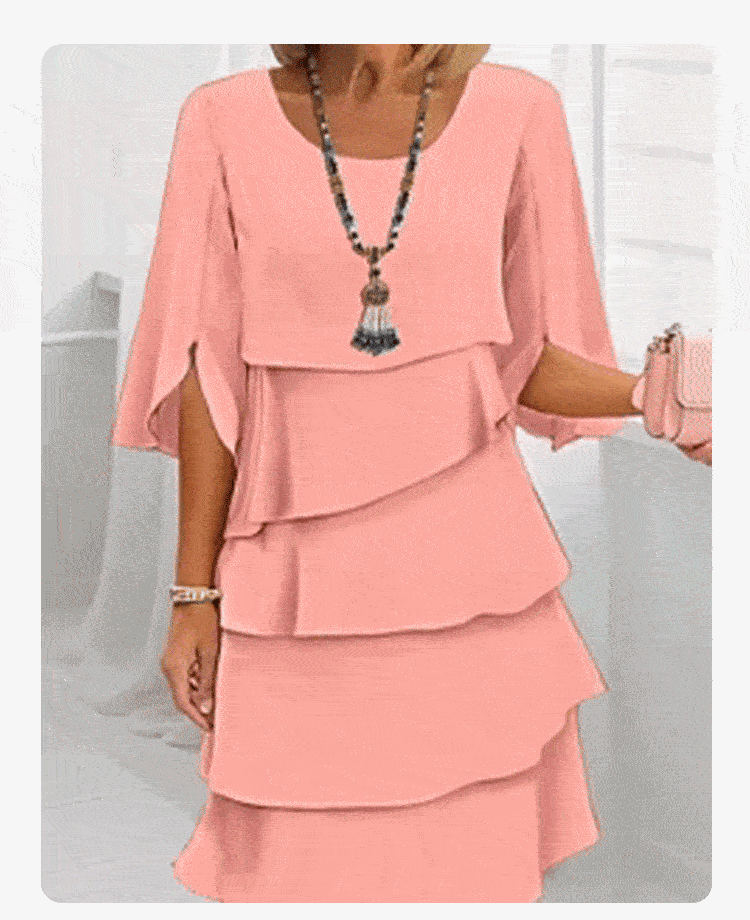 Elegant klänning med lager på lager och volangärmar för kvinnor