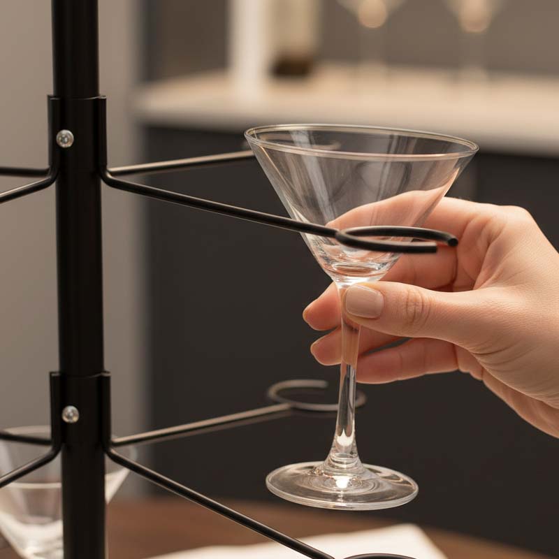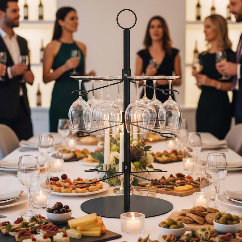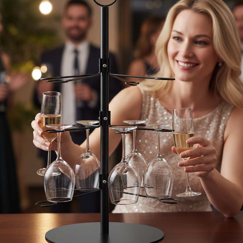 ELEGANT 3-NIVÅ DESIGN - Detta ställ håller upp till 12 glas, vilket skapar en fantastisk visuell presentation för vilket evenemang som helst. Det serverar drycker effektivt samtidigt som det sparar bordutrymme, vilket gör din festuppställning organiserad och sofistikerad.