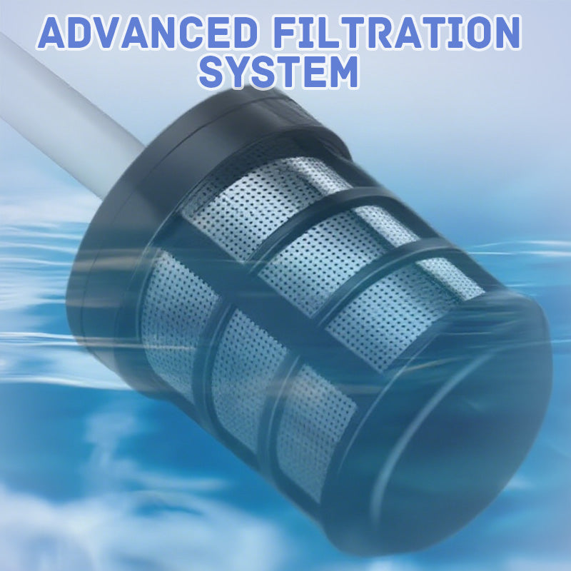 DUBBELLAGER NANO FILTRATIONSSYSTEM – Utrustad med ett 304 rostfritt stål nano-mesh-filter som tar bort skräp och partiklar från vattnet, skyddar motorn och förlänger maskinens livslängd även med orenat vatten.