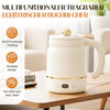 Denna bärbara elektriska kokmugg ersätter flera verktyg i ett! Med 900 ml generös kapacitet, keramisk beläggning för enkel rengöring, justerbar temperatur (40–80°C) och 24-timmars värmefunktion – den tillagar everything från varmt vatten till soppa, gröt eller barnmat. Kompakt, säker och lätt att bära – idealisk för små kök, kontor eller resor!