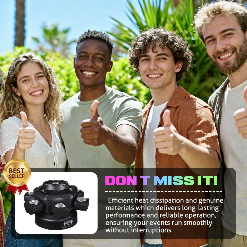 DYNAMISK DESIGN MED SEX ARMAR - Har sex oberoende rörliga armar, som var och en projicerar en kraftfull strÄle. Detta skapar fantastiska, rumsfyllande effekter och energiska ljusshower som fÀngslar vilken publik som helst och förbÀttrar atmosfÀren pÄ ditt evenemang.