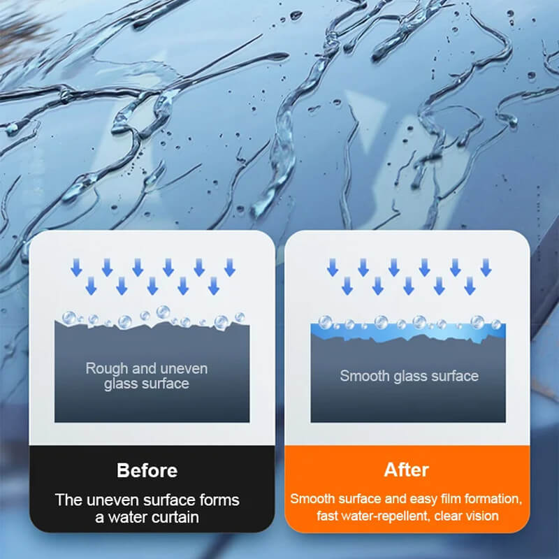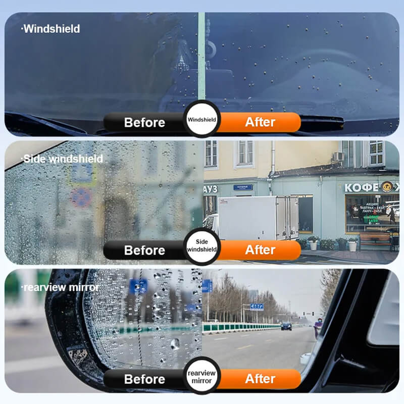 Denna spray ger säkrare körning under regniga dagar med sin långvariga och snabba vattenavvisande effekt.