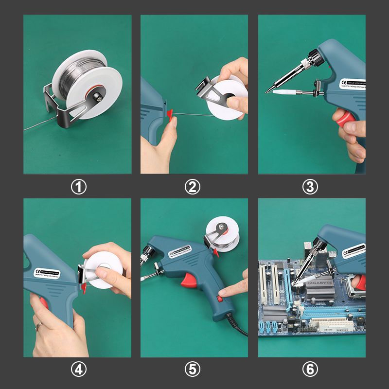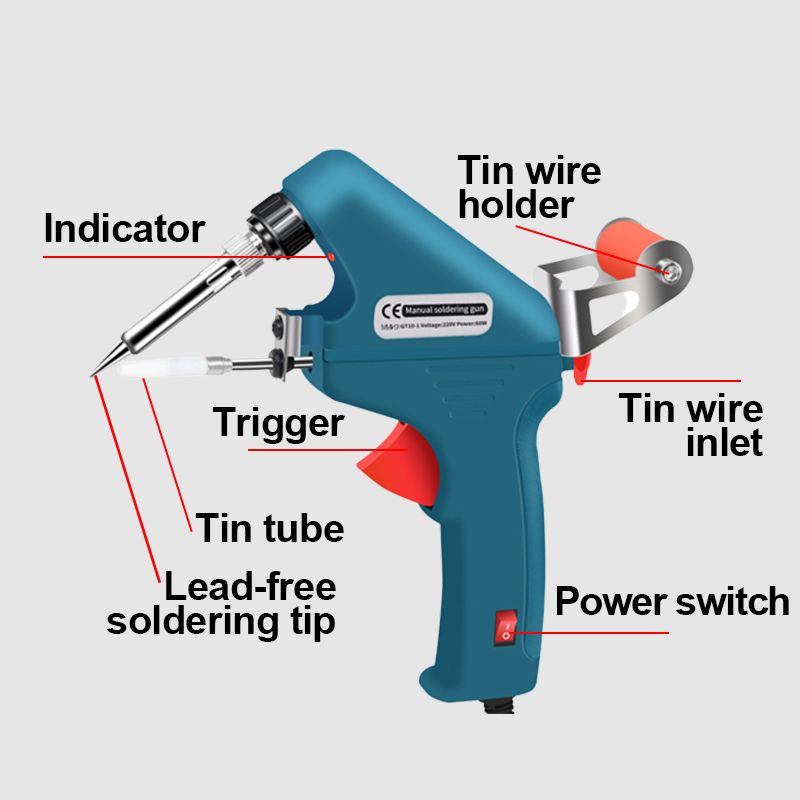 * Enkel Att Använda: Avtagbart tintrådshållare för enkel installation, borttagning och ersättning av tintråd. Enhandsgrepp förbättrar lödningens effektivitet.