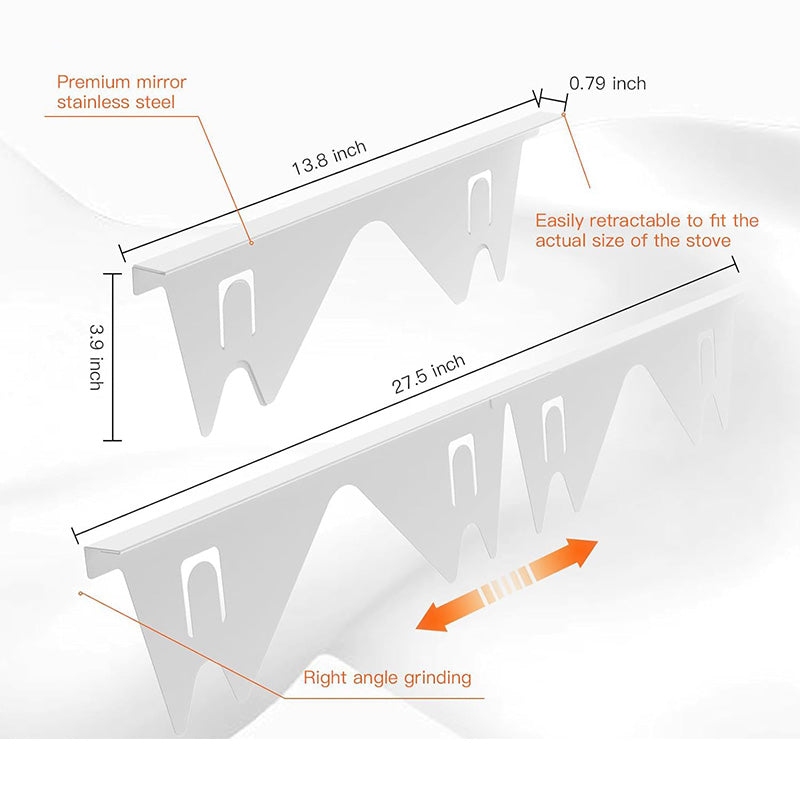 ENKEL JUSTERBAR LĂNGD: Har en flexibel, justerbar design som passar springor av olika storlekar och sĂ€kerstĂ€ller en perfekt passform för de flesta spisar och bĂ€nkskivor. Dra helt enkelt in eller förlĂ€ng mellanrumsskyddet för att tillgodose dina behov.