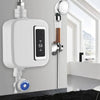 Tanklösa elektriska varmvattenberedare Àr 90 % mindre Àn traditionella varmvattenberedare; kan installeras pÄ vÀggen eller vid anvÀndningsstÀllet; MÄtt 16,5 x 14,5 x 6,8 cm (6,5 x 5,7 x 2,6 tum)