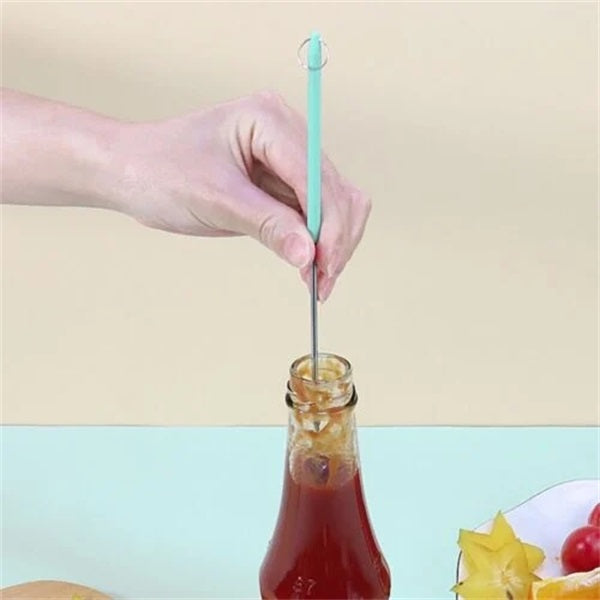 Med Mini Silikon Teleskopisk Skrapa/ Skrapande Sked, som har en infällbar design, kan du justera längden för att anpassa flaskans olika höjder efter dina behov.