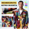 Unisex Simple Rainbow Color Plaid Vintage Printed Lapel Långärmad skjorta med fickor