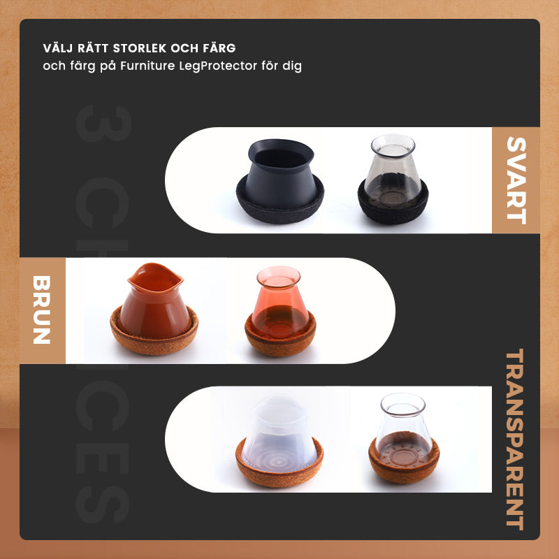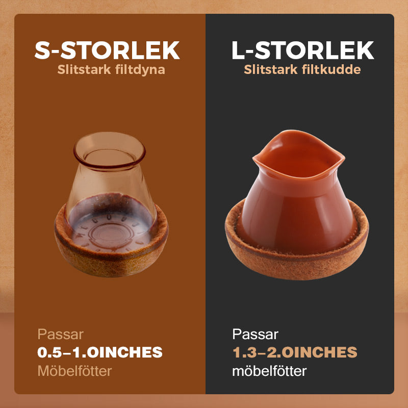Den uppgraderade versionen finns i tvÄ storlekar för att passa olika storlekar pÄ möbelfötter, storlek S för 0,5-1,0 tum och storlek L för 1,3-2,0 tum för olika former av möbelfötter. VÀlj rÀtt skydd för dina möbler!