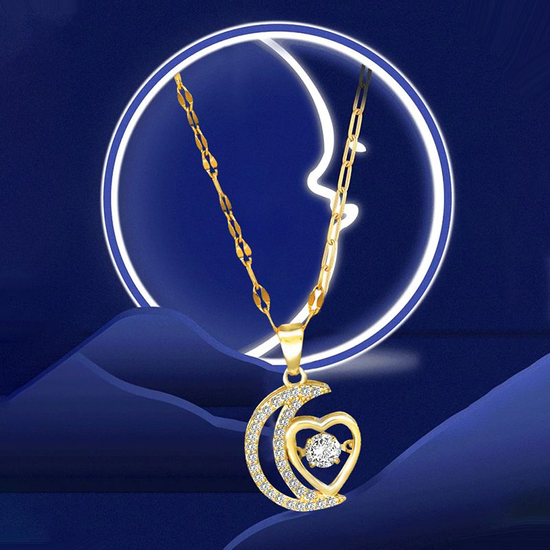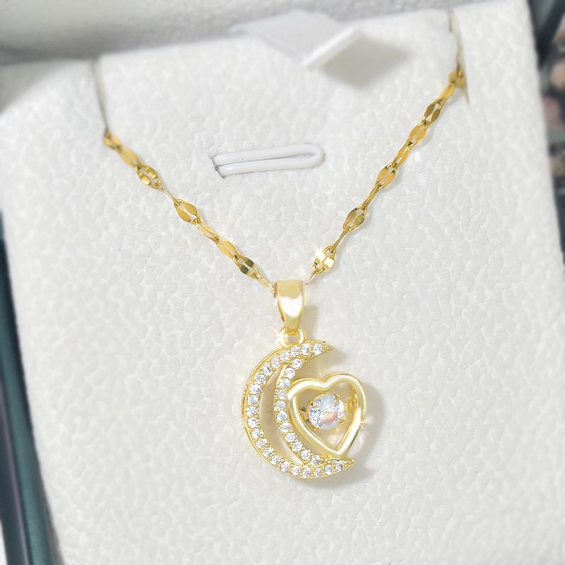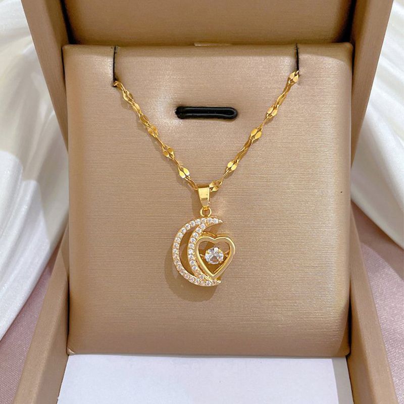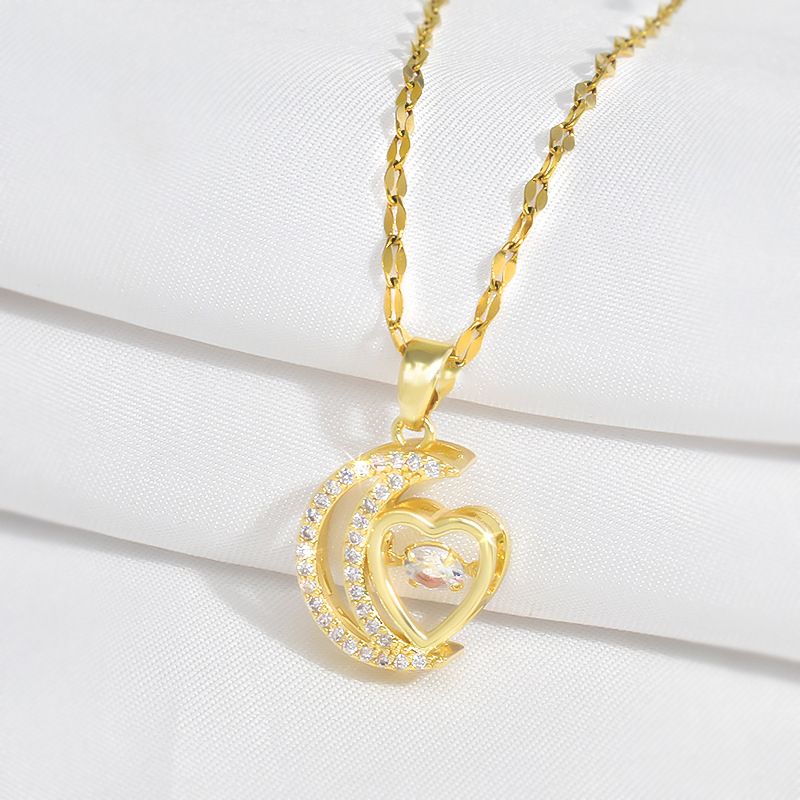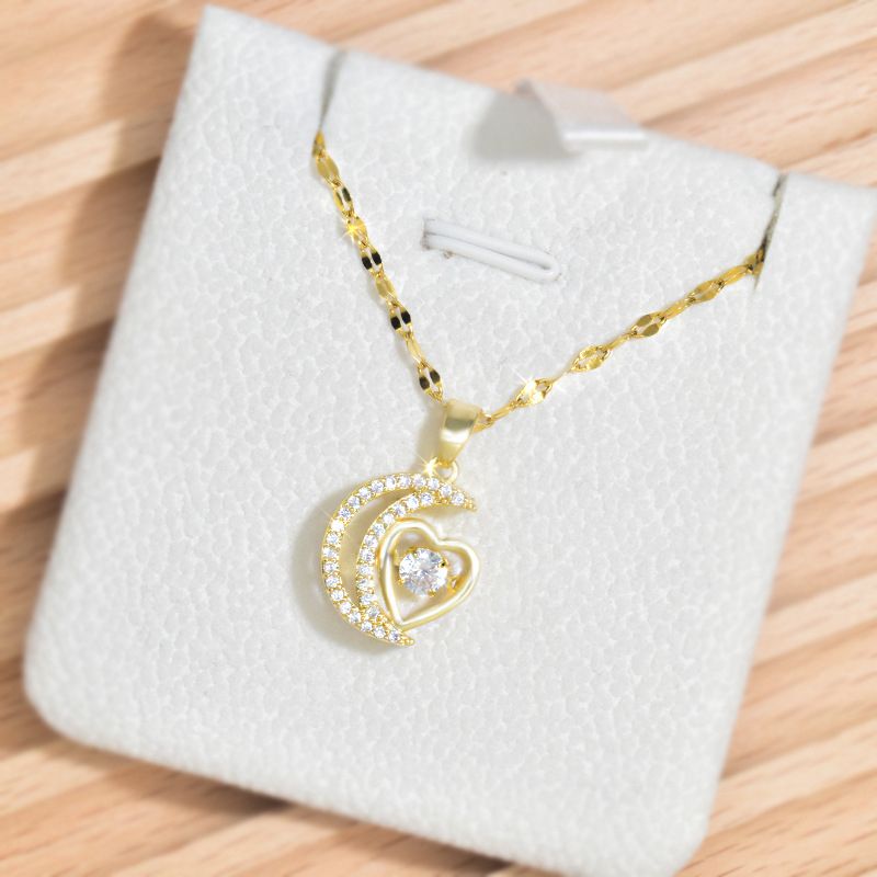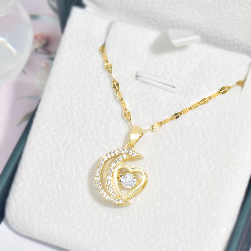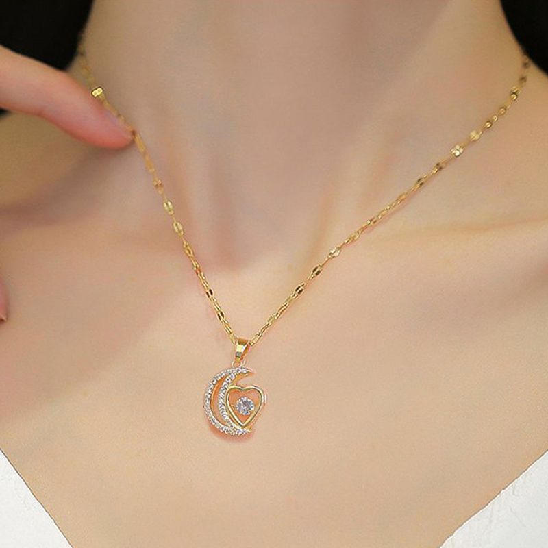 Underbar design: Det delikata halsbandet har en halvmÄne och hjÀrtform, prydda med gnistrande zirkonstenar, vilket skapar ett attraktivt och lyxigt utseende.