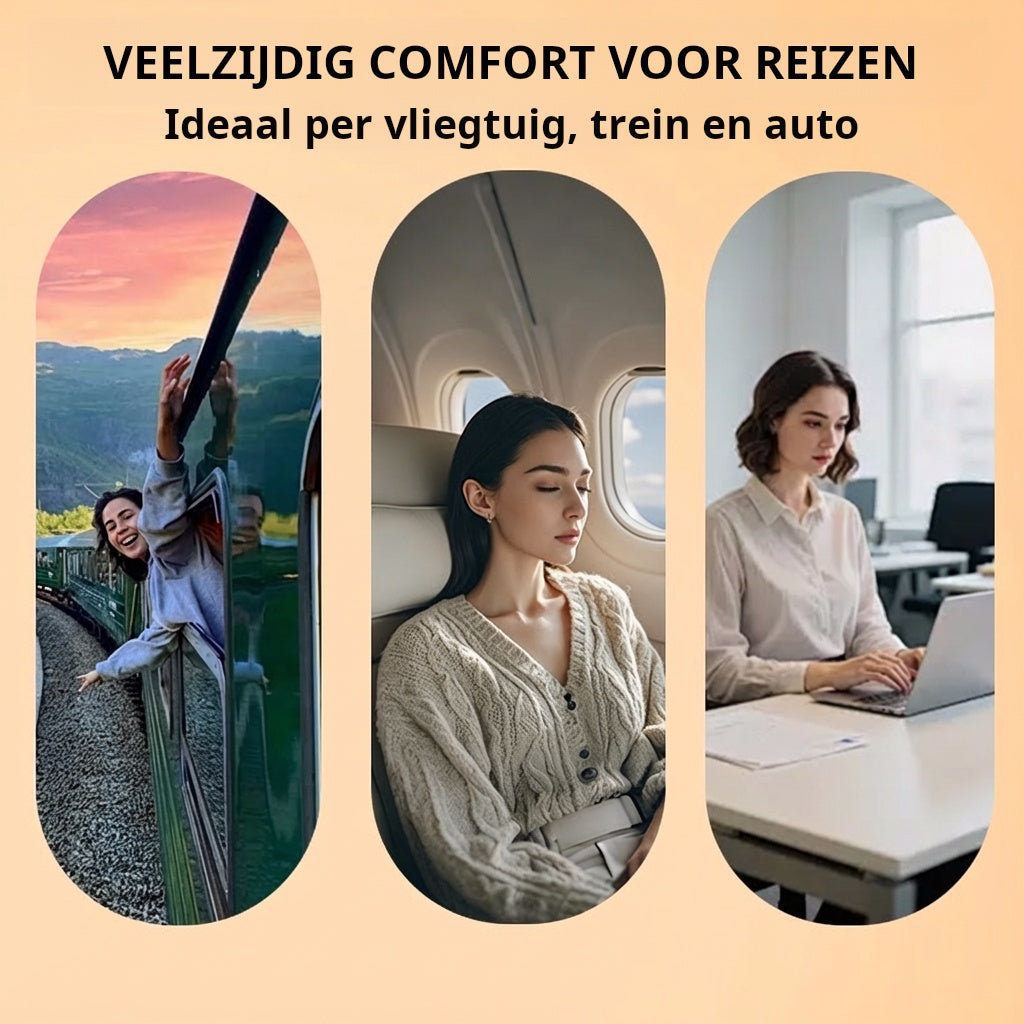 ERGONOMISK FRAMà TLUTANDE DESIGN: HÄller ditt huvud och din nacke i en naturlig, framÄtlutad position, vilket minskar spÀnningen pÄ din ryggrad och dina axlar och gör att du kan vila bekvÀmare under lÄnga flyg- eller tÄgresor.
